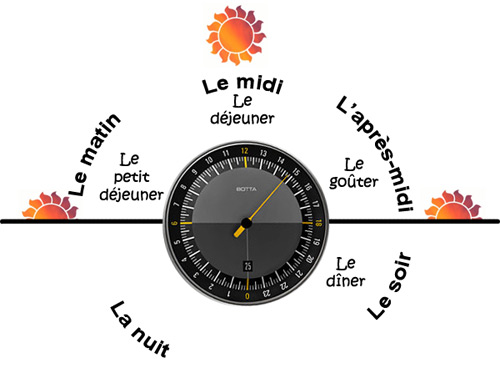 Voici les différents moments de la journée avec les repas correspondants :